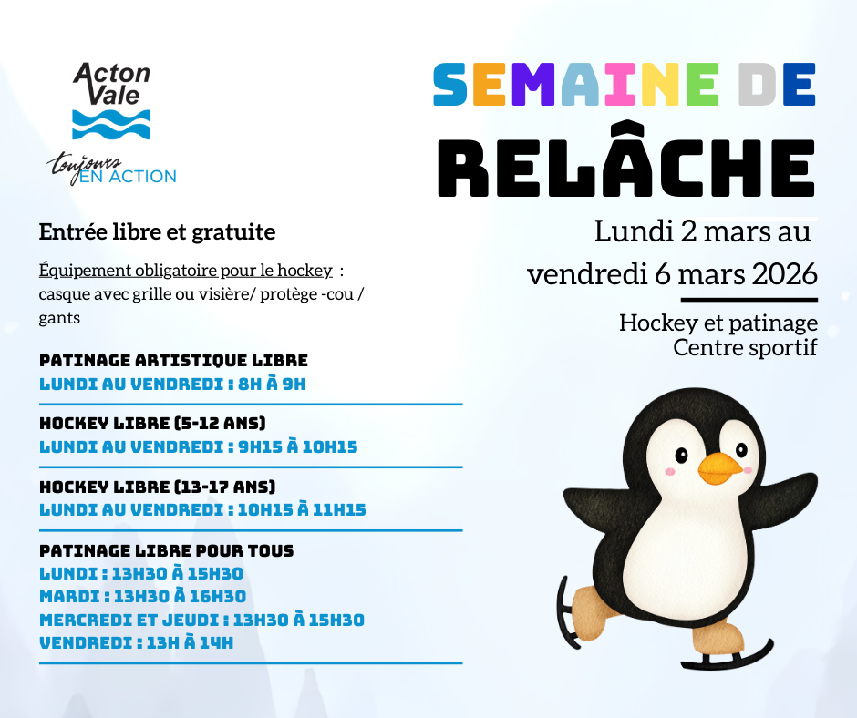 Inscriptions auprès des Services culturels et sportifs d’Acton Vale
