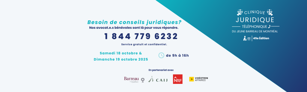 La 45e Clinique juridique téléphonique du Jeune Barreau de Montréal, qui aura lieu cette fin de semaine les 18 et 19 octobre, de 9 h à 16 h. Il s’agit […]