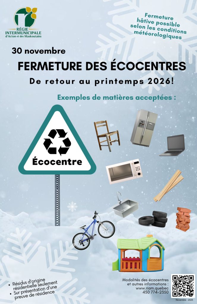 Saint-Hyacinthe, le 2 octobre 2025 Avec le retour de l’automne et de ses paysages colorés, la Régie vous partage trois options simples pour vous départir d’un surplus de feuilles : […]