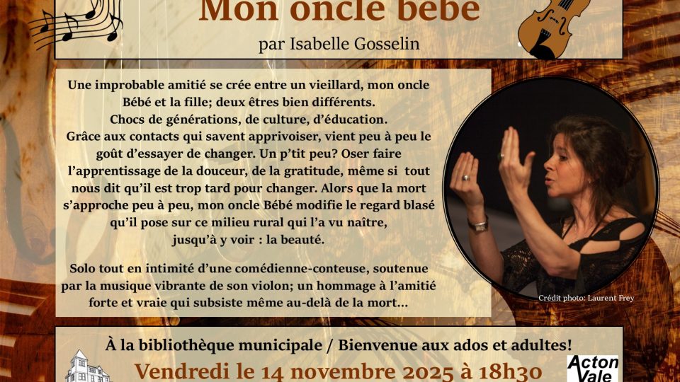 Sindy te présentera une histoire à l’ambiance halloweenesque !La rencontre se terminera avec un petit bricolage. Tu peux venir en pyjama si tu le désires.À la bibliothèque municipale. C’est gratuit! […]