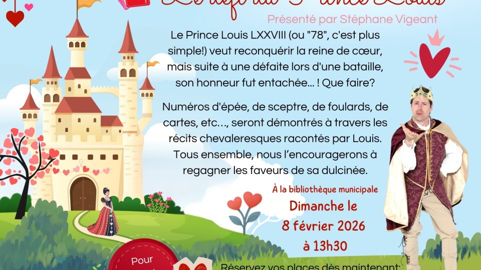 Présenté par Stéphane Vigeant.Le Prince Louis LXXVIII (ou « 78 », c’est plus simple!) veut reconquérir la reine de cœur, mais suite à une défaite lors d’une bataille, son honneur fut entachée… […]