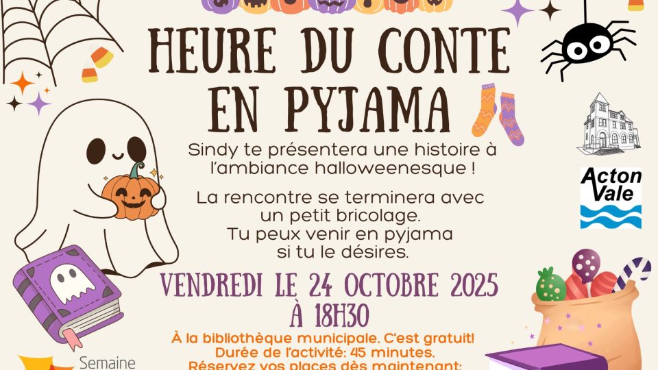 Sindy te présentera une histoire à l’ambiance halloweenesque !La rencontre se terminera avec un petit bricolage. Tu peux venir en pyjama si tu le désires.À la bibliothèque municipale. C’est gratuit! […]