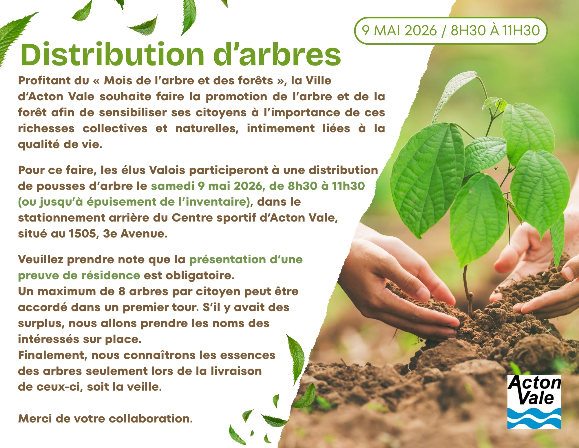 Profitant du « Mois de l’arbre et des forêts », la Ville d’Acton Vale souhaite faire la promotion de l’arbre et de la forêt afin de sensibiliser ses citoyens à […]