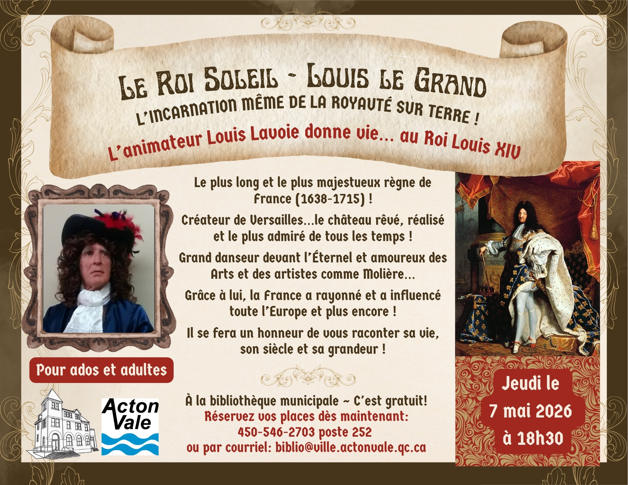 Le Roi Soleil – Louis le Grand: L’animateur Louis Lavoie donne vie… au Roi Louis XIV